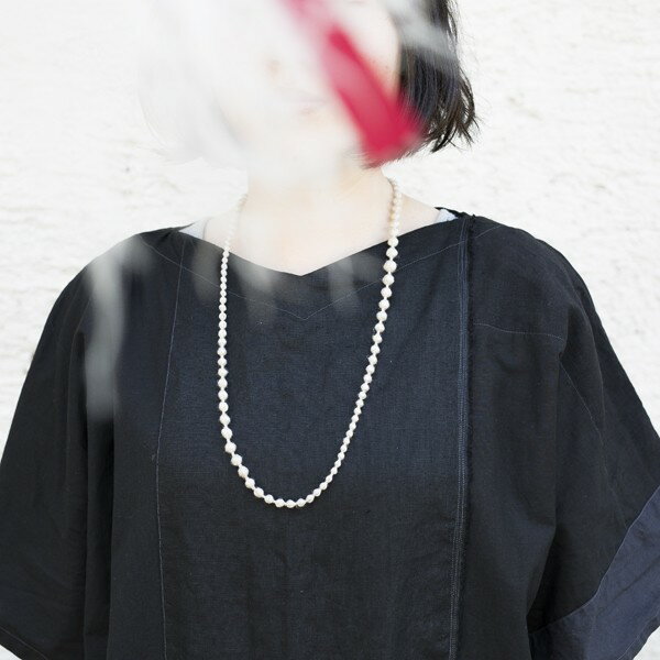 シルクとリネン、2つの自然素材をミックスしたオリジナル糸でつくった、ソフトな着け心地が特徴のネックレスです。