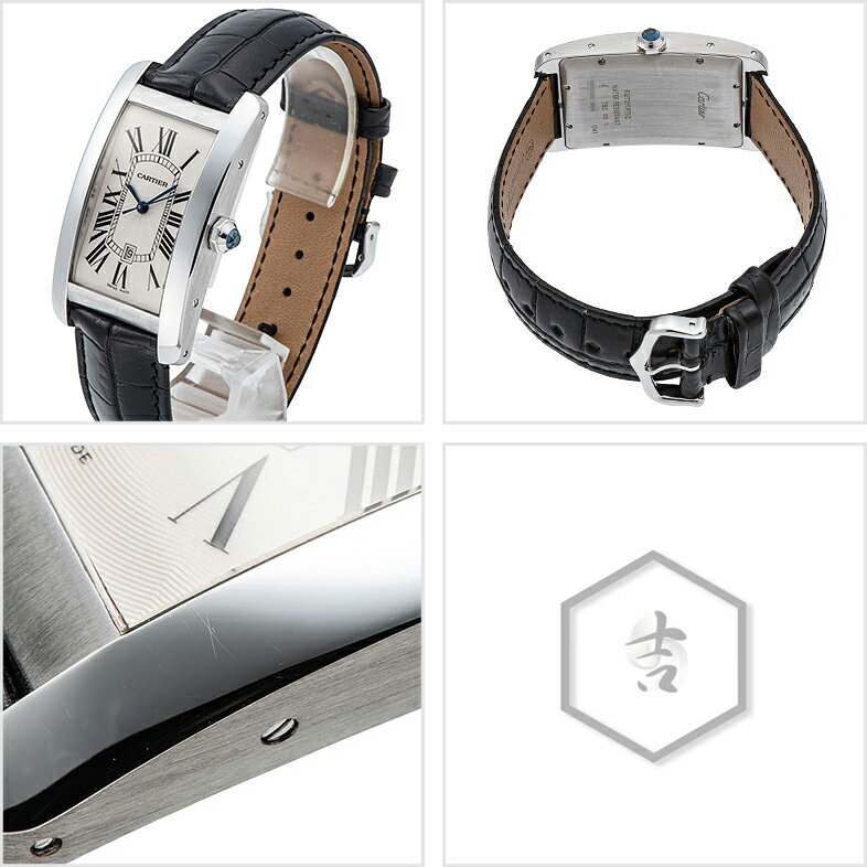 商品情報 モデル タンクアメリカン LM Ref W2605556 状態 Used サイズ メンズ ケース直径45.1mm×26.6mm素材WGカラーシルバーダイヤルインデックスローマベゼルベルトレザームーブメント自動巻き機能デイト表示備考尾錠※ケースサイド全体に小傷があります。